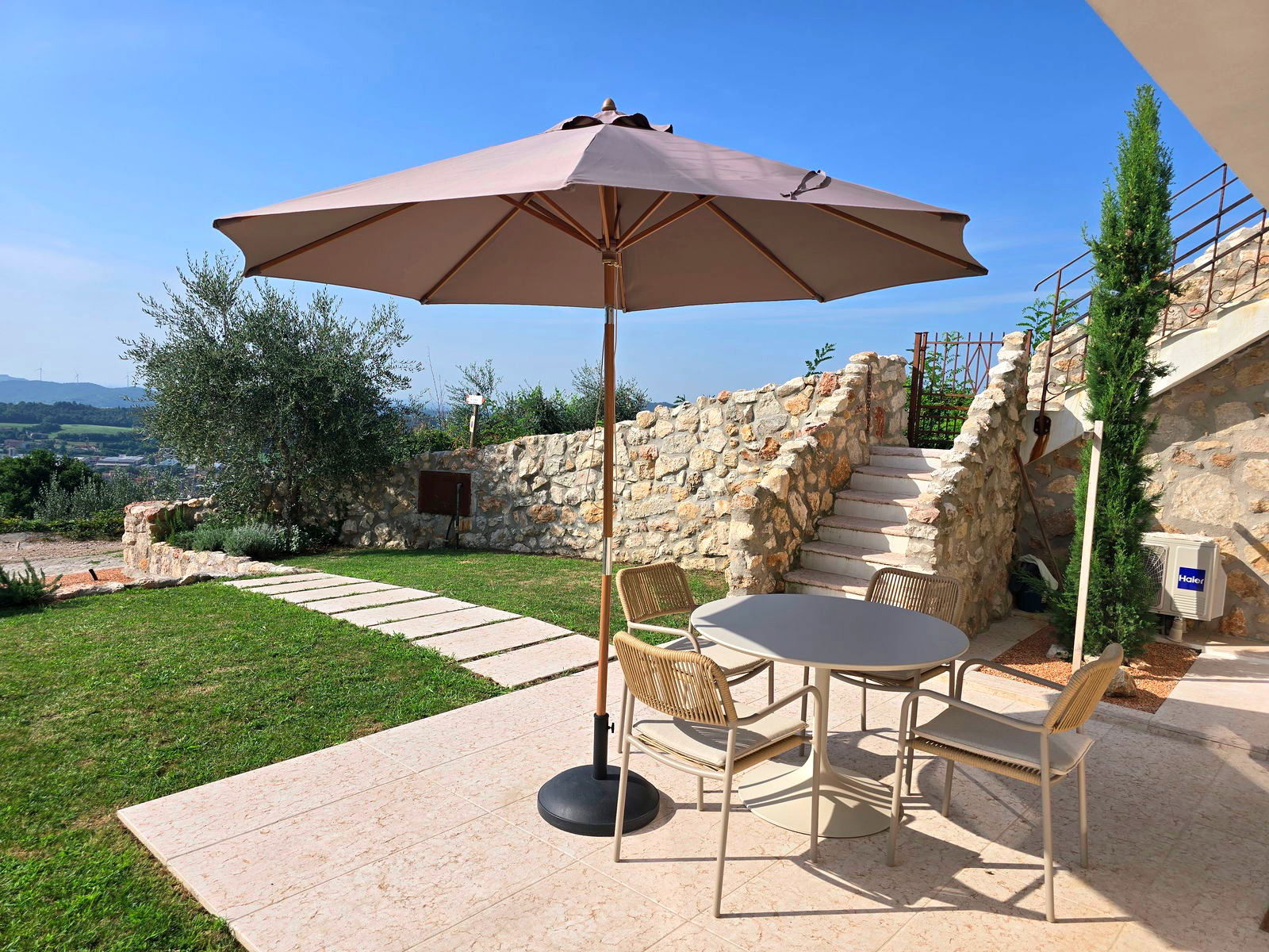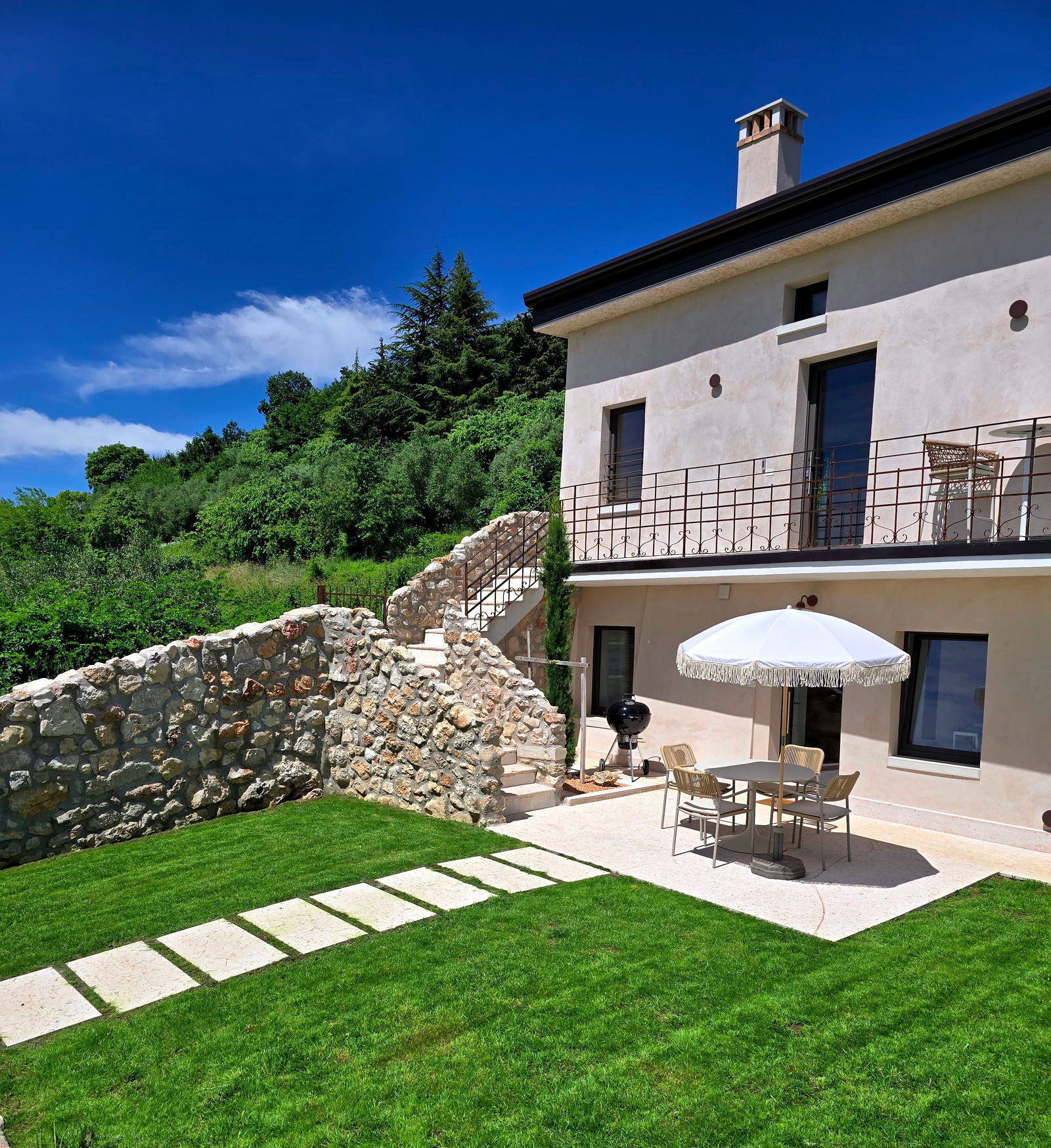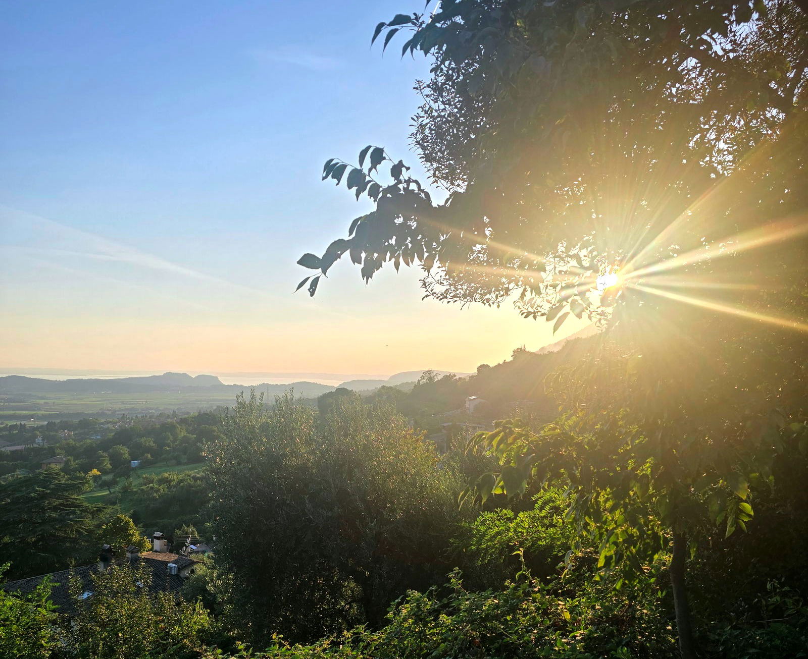 Buiten geniet je van ligstoelen en een mooie voortuin, met rondom alleen maar groen, wijngaarden en olijfbomen. Het uitzicht – tot ver over de heuvels en in de richting van het Gardameer – is simpelweg uniek.